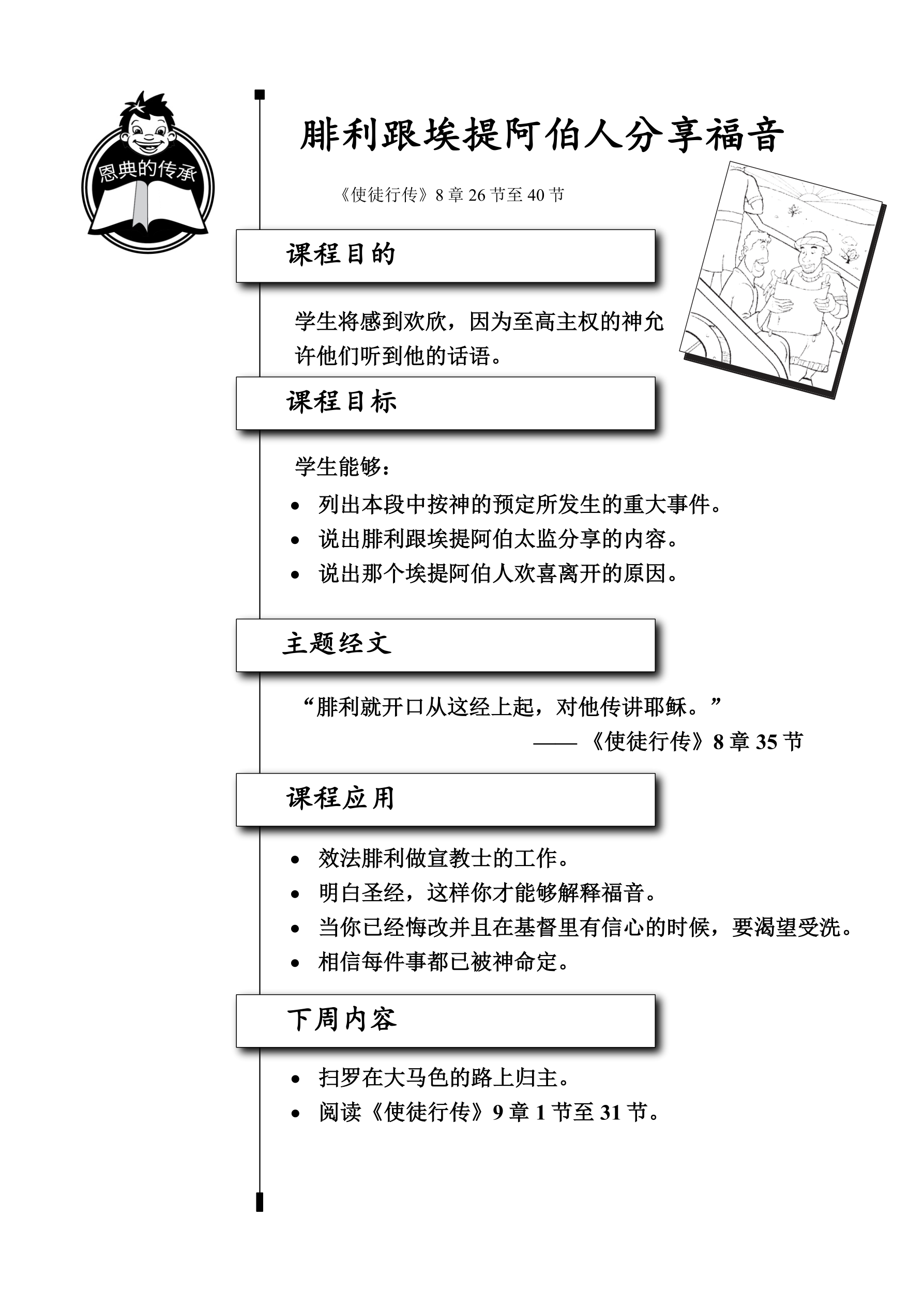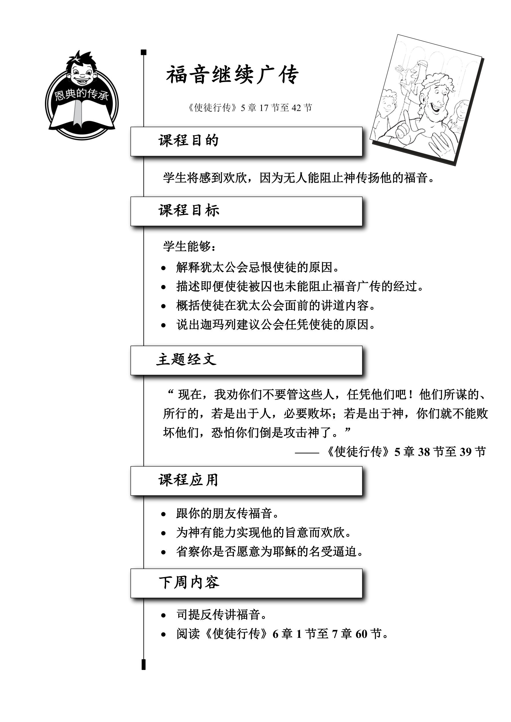 第5课:福音继续广传 预备真理 “你们要将我这话存在心内,留在意中……也要这样教训你们的儿女……”——《申命记》11章18节至19节 请花时间来准备你的心思意念,按着正意分解真理的道(提后2:15)。