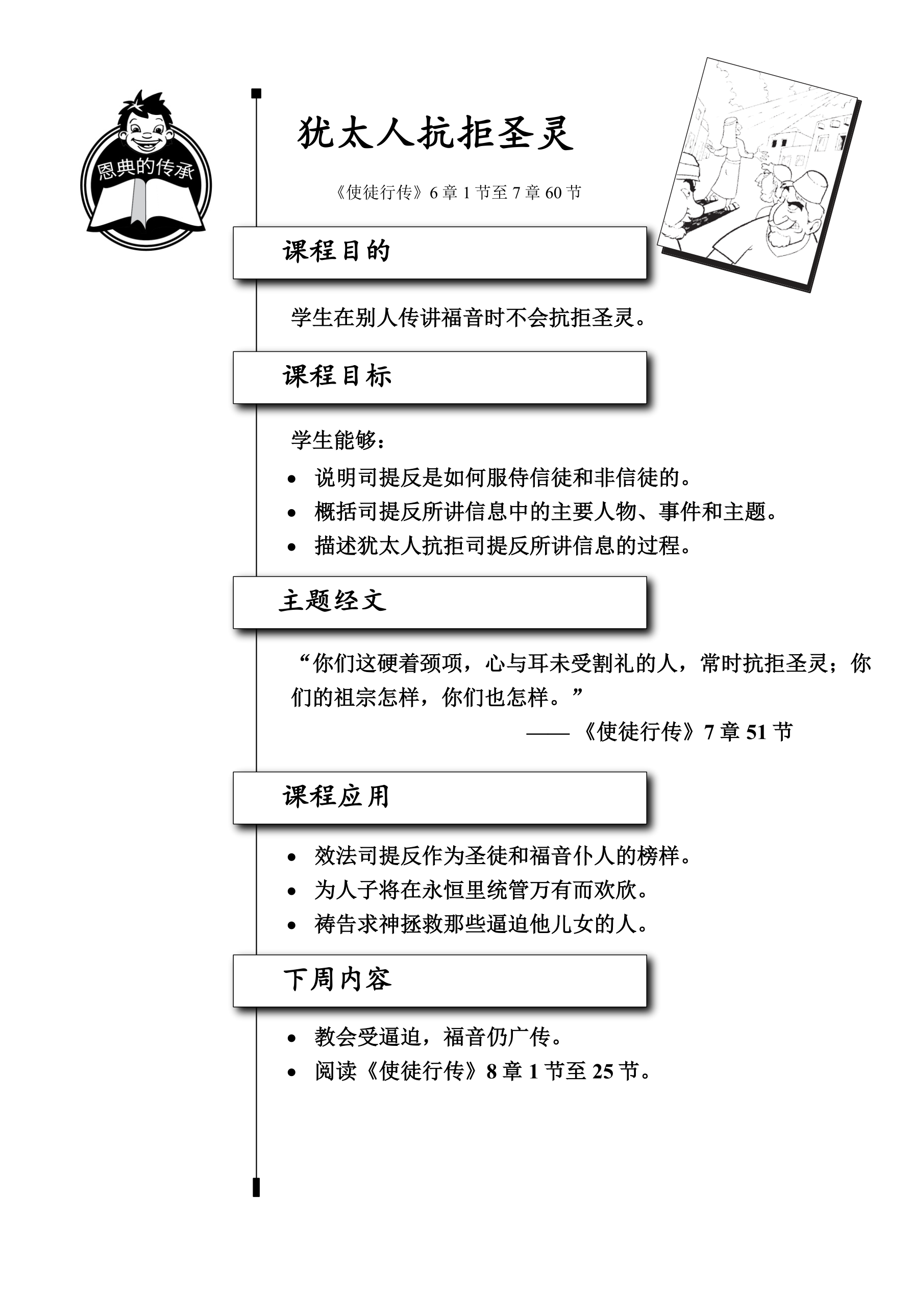 第6课:犹太人抗拒圣灵 预备真理 “你们要将我这话存在心内,留在意中……也要这样教训你们的儿女……”——《申命记》11章18节至19节 请花时间来准备你的心思意念,按着正意分解真理的道(提后2:15)