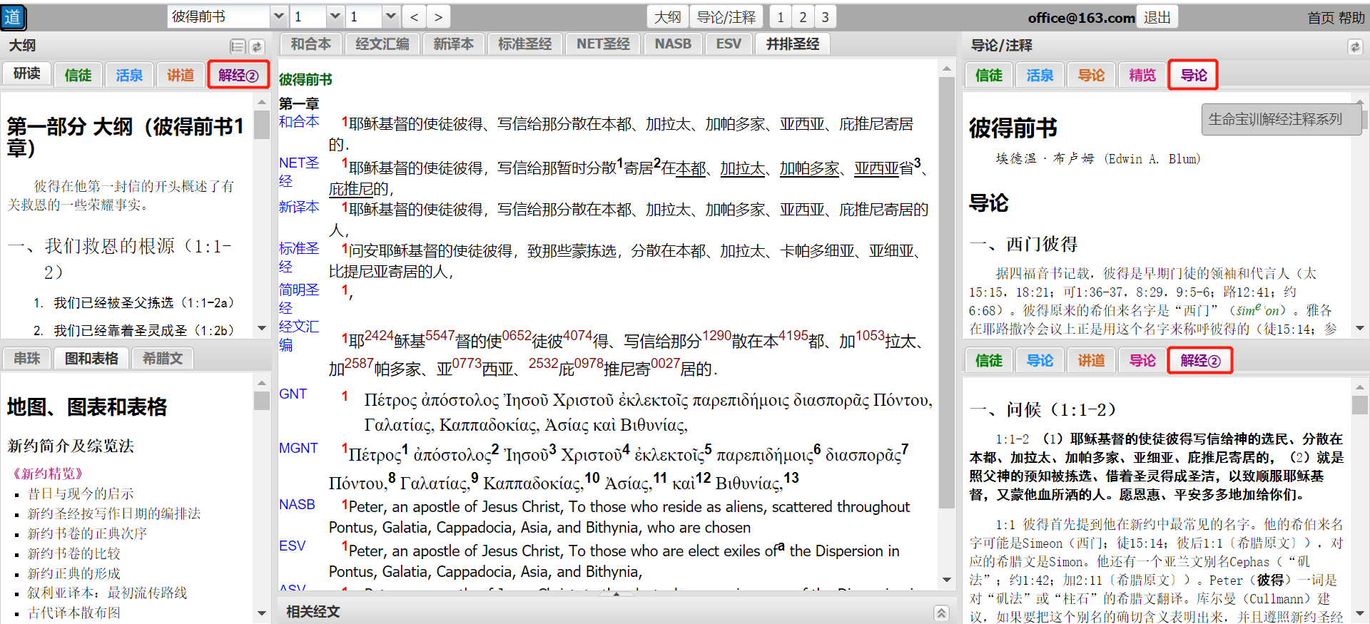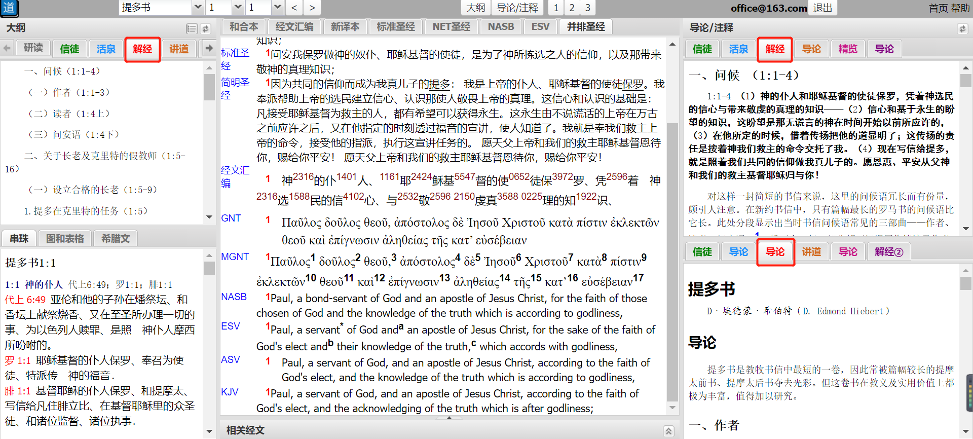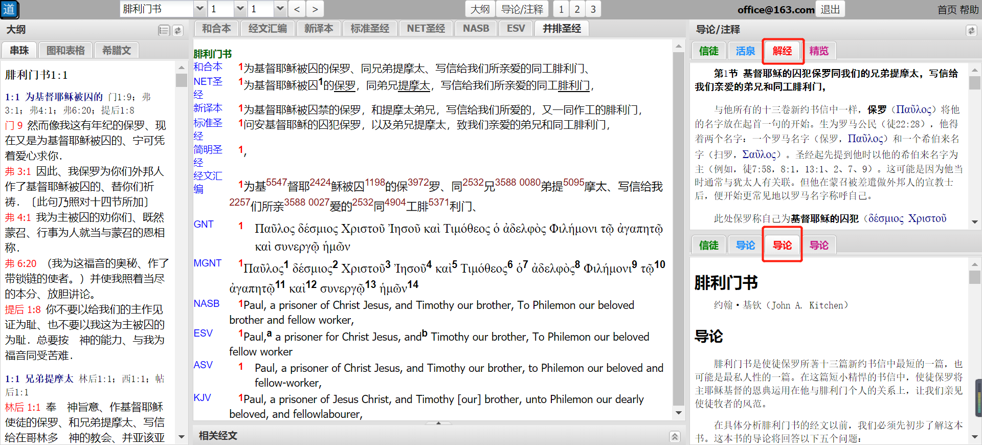 4. 《生命宝训解经注释系列》大多是依据某一圣经英译本来做希腊原文解析,翻译过程中若完全依据某一圣经中译本,有时无法找到对应的钥字钥词,句法上也有较大的出入,以至于无法完全体现作者的解经思路。因此,我们采取这样的方法:当和合本译文和英译本译文出入不大、不影响读者理解作者的解经思路时,我们尽量使用2009年“神”版的和合本译文;反之,则参考其他中译本的译文及相关资料,把英译本译文直译出来。这符合“信”的翻译原则,从而也保证了原著的逻辑思路得以清晰地体现。此外,我们会在注释正文每一部分开头附上对应的经文段落,以便读者阅读整段经文的上下文。